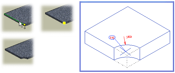 Tee neljännesympyrän muotoinen kolo tason kulmaan