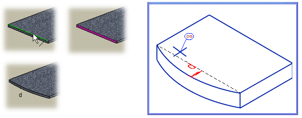 - Määritä pullistuksen syvyys antamalla d-mitan arvo.