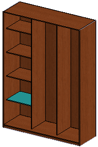 - Valitse haluamasi hylly aktiiviseksi Liukuovikaluste-keskusteluikkunan esikatselumallissa.Huomaa: Piilota tarvittaessa ovet tyhjentämällä Tarvikkeet ja ovet -välilehdellä valinta
