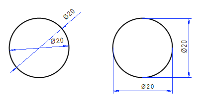 Mitoita ympyrän ja kaaren halkaisija yhdensuuntaisprojektiossa. Ennen mitoitettavien elementtien valintaa voit muuttaa mitan ominaisuuksia.