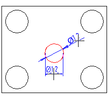 - Mitoita kierre osoittamalla reiän reunaviiva. Kierteen pituus lisätään perusmittana.