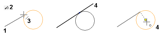 Tangenttiviivaimen piste-kaari asetus valittu. - Osoitettu ympyrä, jolle tangentiaaliseksi viiva piirretään.