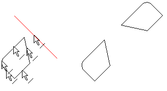 Valitaan kaikki viivaketjun viivat paitsi viiva, joka valitaan symmetriaviivaksi. Jos symmetriaviivaksi valitaan viiva, joka on valittu peilattavaksi, ohjelma ei kopioi peilauksessa viivaa.