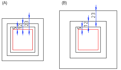 • Kun valintaruutu on tyhjä, arvo on offset-viivojen välinen etäisyys (B).