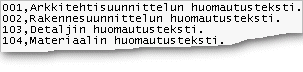Yleisten huomautusten lisäksi voit lisätä piirustukseen projektikohtaisia huomautuksia, jotka valitset projektin alla olevasta tietokannasta NSONOTES. Voit määrittää huomautukset tietokantaan omille riveilleen, tai tuoda huomautukset CSV-tiedostomuodossa. Muokkaa projektikohtaisia huomautuksia seuraavasti: