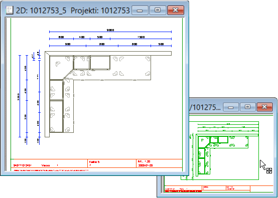 Piirustukset tehdään huoneen 3D-mallista. Suunnittele malli mahdollisimman valmiiksi ennen piirustusten tekemistä. Näin vältyt usealta piirustusta päivittävältä työvaiheelta, joka aiheutuu kalustuksen muokkaamisesta piirustuksen tekemisen jälkeen.