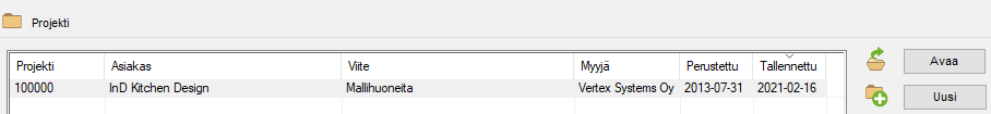 Avaa/Uusi. - Valitse Mallinnus | Projektit ja huoneet |