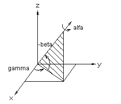Katselusuunnan määrittävät kulmat gamma, beta ja alfa, jotka sijoittuvat koordinaatistoon seuraavasti: