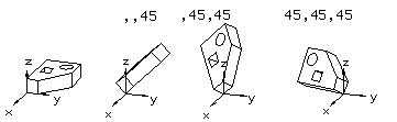 kerralla x- (alfa), y- (beta) ja z-akselien (gamma) ympäri annettujen kulmien verran.