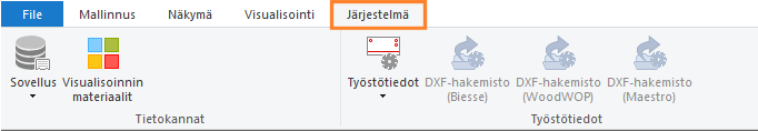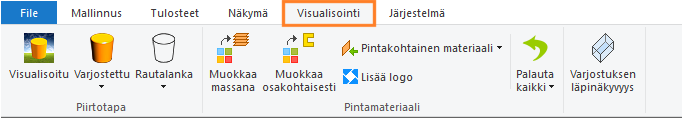 Ohjelmiston lisäominaisuuksien toiminnot löytyvät omalta välilehdeltään, esimerkiksi Visualisointi.