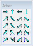 Voit lisätä seinän suuntanuolien avulla sen jälkeen, kun olet valinnut toiminnon Mallinnus | Rakennusosa | Seinä  ja osoittanut seinän aloituspisteen.