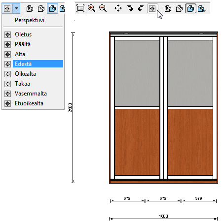 - Kun säilytysjärjestelmä on valmis, siirrä se huoneeseen toiminnolla Siirto huoneeseen. Liukuovikaluste-keskusteluikkuna sulkeutuu.