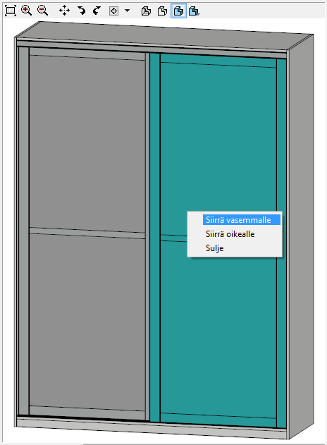 - Napsauta haluamasi ovi aktiiviseksi Liukuovikaluste-keskusteluikkunan esikatselumallissa.