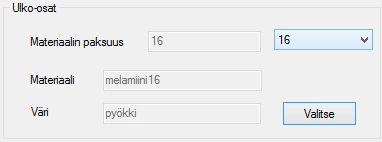 - Voi valita ulko-osille uuden materiaalin ja värin Valitse -painikkeella. Materiaalin paksuus ei tällöin muutu.