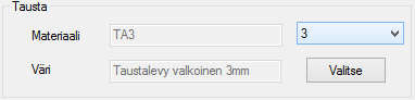 - Voi valita taustalle uuden värin Valitse-painikkeella. Materiaalin paksuus ei tällöin muutu.