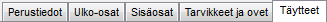 - Kaikki ylä- ja sivutäytteet tulevat kerralla valituiksi ja niille annetaan Mitta-kenttään oletusarvo 50.