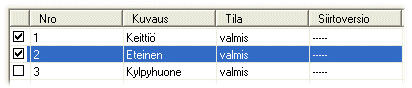 huoneet, joiden valintaruutu on valittu