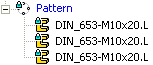 If the pattern was added to the feature pattern of a part or to a part pattern, you can restore all components at once by solving the pattern. You can identify patterns of this kind from the pattern containing only one kind of component.