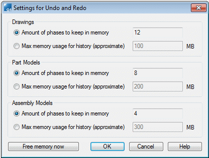 Settings for the Undo and Redo Functions
