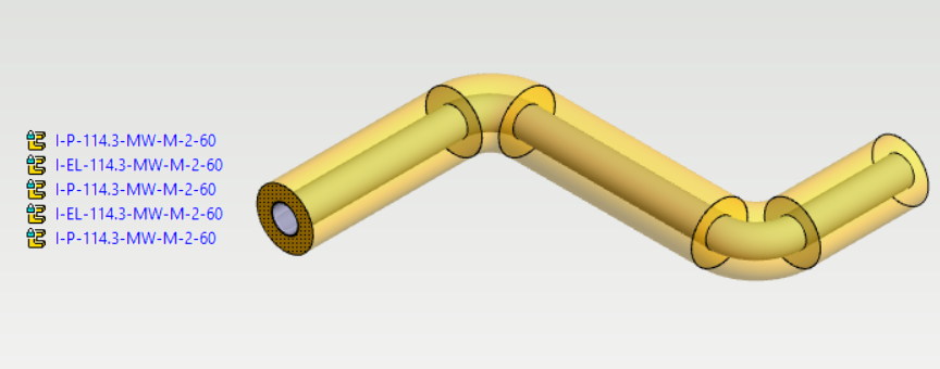 Individual parts of the pipe line will have their own insulation part with item data. The insulations are shown as separate parts in the feature tree.
