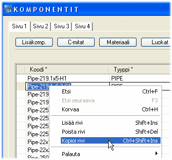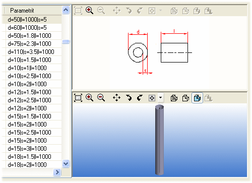 Select a pipe from the assembly. Fill in the data of the new component into the database.