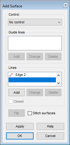 • No control – Surface is created based on an edge line or edge lines.