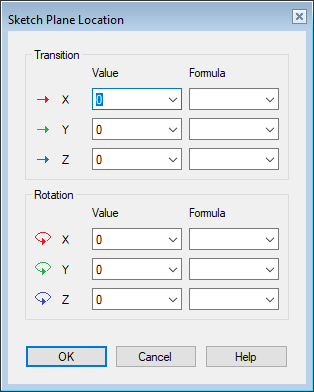- You can relocate for example a sketch, plane or a raster. The offsets and rotations entered into the dialog box are always in relation to the reference geometry.