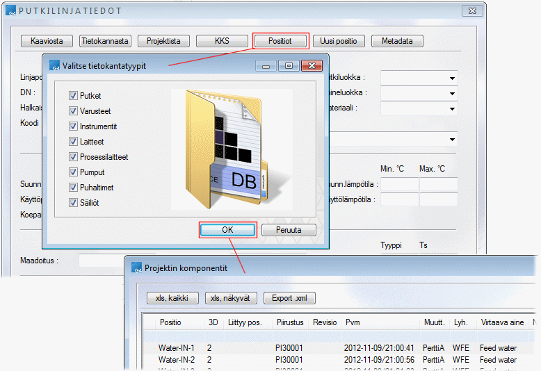 3. Select the database type(s) for which data will be collected in the list. For example, Pipes, Equipments, Instruments.