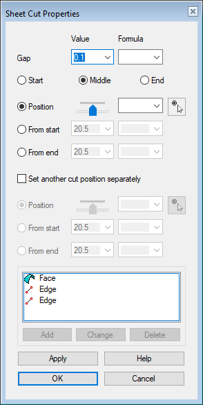 Sheet Cut Properties