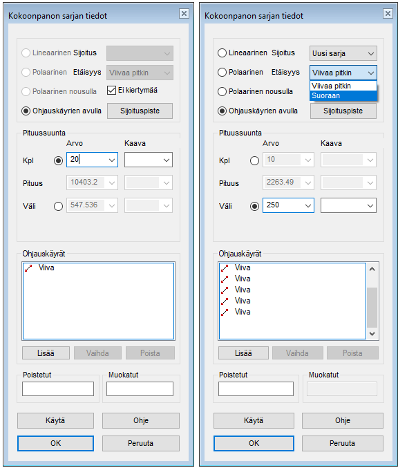 Sarja ohjataan kulkemaan käyrää tai tangentiaalista viivaketjua pitkin. Sarjan jäsenet voi asettaa joko määrävälein tai tasan koko ohjauskäyrälle.