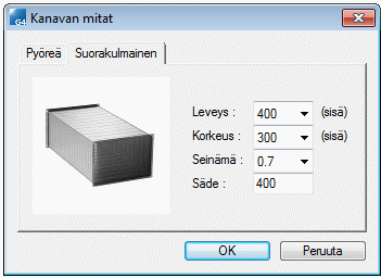 mitat keskusteluikkunaan. Leveys (sisä), Korkeus (sisä), Seinämä ja Säde. Valitse OK.