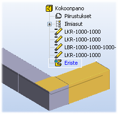 Kanavalinjan yksittäisille osille syntyy erikseen oma eristeosansa nimiketietoineen. Eristeet näkyvät piirrepuussa erillisinä osina.
