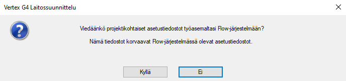 projektin tiedostot. - Ohjelma kysyy varmistuksen sille halutaanko projektin tiedostot viedä Flow'hun. Huomaa,