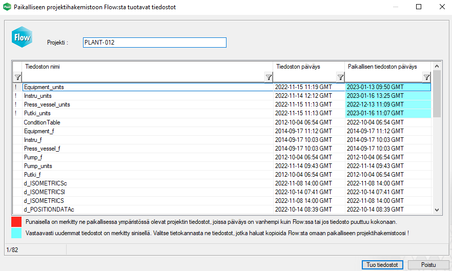 - Paina Tuo tiedostot jolloin ohjelma tallentaa valitut tiedostot käyttäjän paikalliseen projektihakemistoon.
