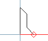 Aseta luonnoksen pystyviiva ja pyöräytysakseli yhdensuuntaisiksi (//). Aseta luonnostelukoordinaatiston pystyakseli ja pyörähdysakselin alkupiste yhteneviksi. Aseta myös pyörähdysakselin lopetuspiste yhteneväksi pystyakselin kanssa.