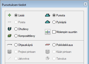 - Onko piirre osamallin ensimmäinen piirre → Et voi tehdä poistavaa pursotusta tai poistavaa pyöräytystä.