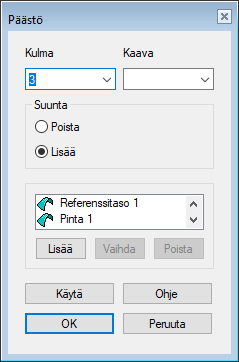 • Valinta on mahdollista vain, kun referenssitasoksi on valittu osan pinta.