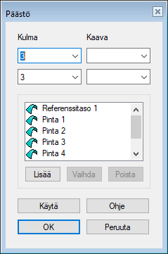 • Kysytään yhtä kulmaa, jos referenssitasoksi valintaan osan pinta.