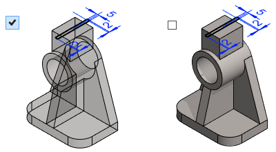 Varjostettuna läpinäkyvä- Kun osa on varjostettu, se piirretään läpinäkyvänä.