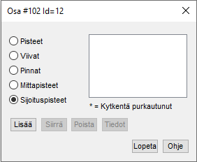 - Painike on aktiivinen vain kun sijoituspiste on valittu.
